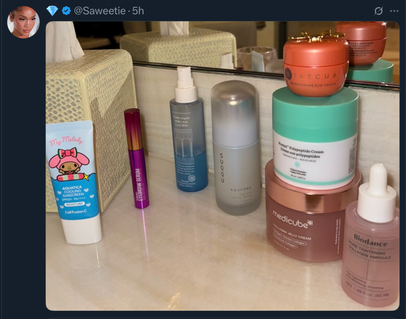 If there's one thing Saweetie knows how to do, keep a beat face OK! I mean this girl is on red carpets, in the studio, or casually shaking the internet with JUST a selfie 🥲, her skin is always radiant, dewy, and camera-ready. The "Icy Girl" rapper has nonchalantly spilled her skincare secrets, and honestly? The routine is high low- luxury as you'd expect but also surprisingly accessible.